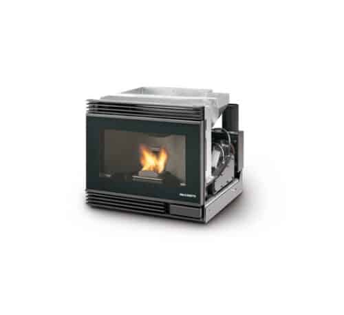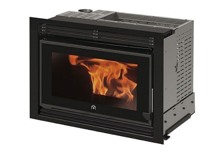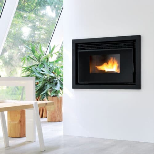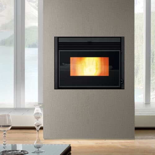 Les inserts fonctionnent sur le même principe, avec un chargement des granulés en façade ou sur le côté via une trappe, et un système de distribution d’air chaud peut être ajouté si besoin.