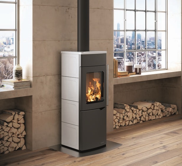 • structure en acier avec finitions nickelées satinées et revêtement en céramique, en acier ou en pierre ollaire;