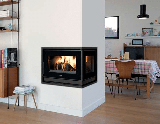 Voici un foyer-insert bon sous tous les angles. Avec sa bi-vision droite ou gauche au choix, vous avez toujours un double regard sur le feu. S’installant en foyer dans une cheminée neuve ou en insert dans une cheminée existante, il offre une belle esthétique grâce à sa porte plein verre sérigraphié. Raccordable à l’air extérieur et équipé pour distribuer l’air chaud dans les autres pièces de la maison (pour cheminée neuve uniquement), il garantit aussi un grand confort. Un confort durable, avec son intérieur fonte et un seuil d’étanchéité compatible RT 2012 et BBC.